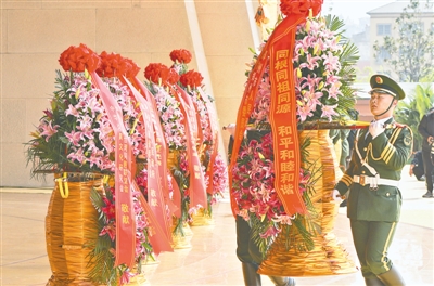 敬獻花籃。鐵凝、王光謙、樓陽生、王凱、張志軍、程學源、鄭平、閻京華,省委常委、鄭州市委書記安偉,鄭州市市長何雄,新鄭市委書記馬宏偉,新鄭市市長楊晉先后走上拜祖臺,向黃帝像敬獻花籃。